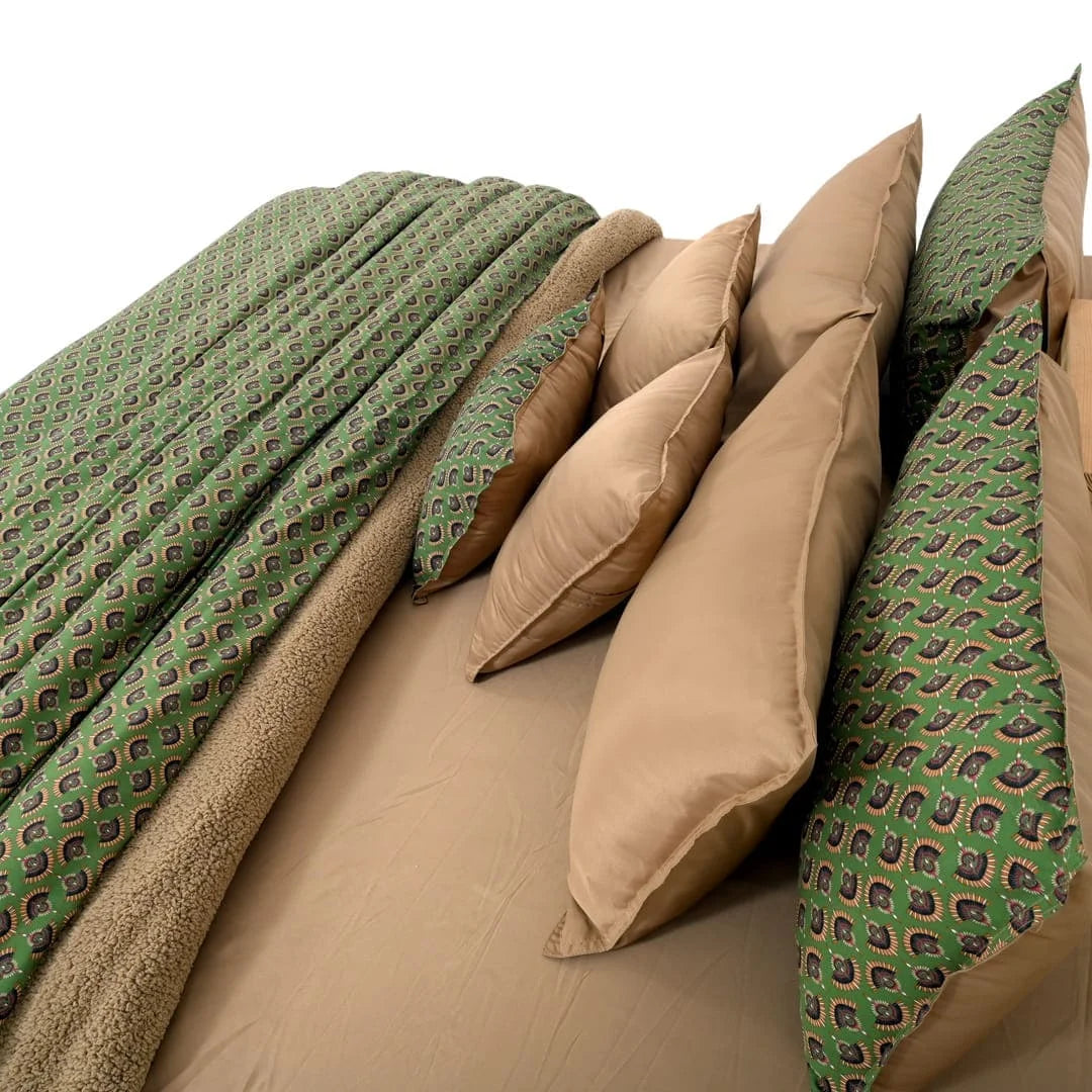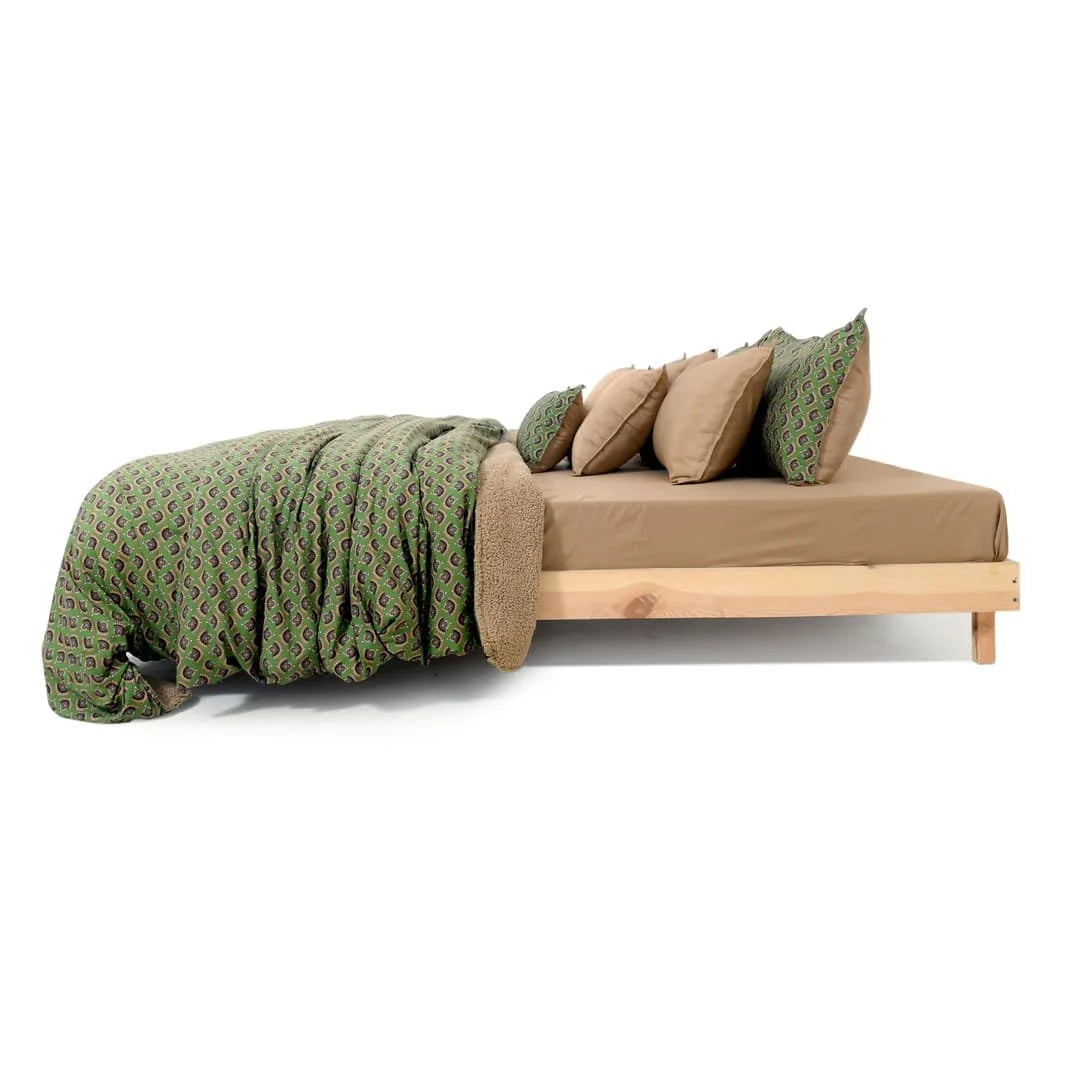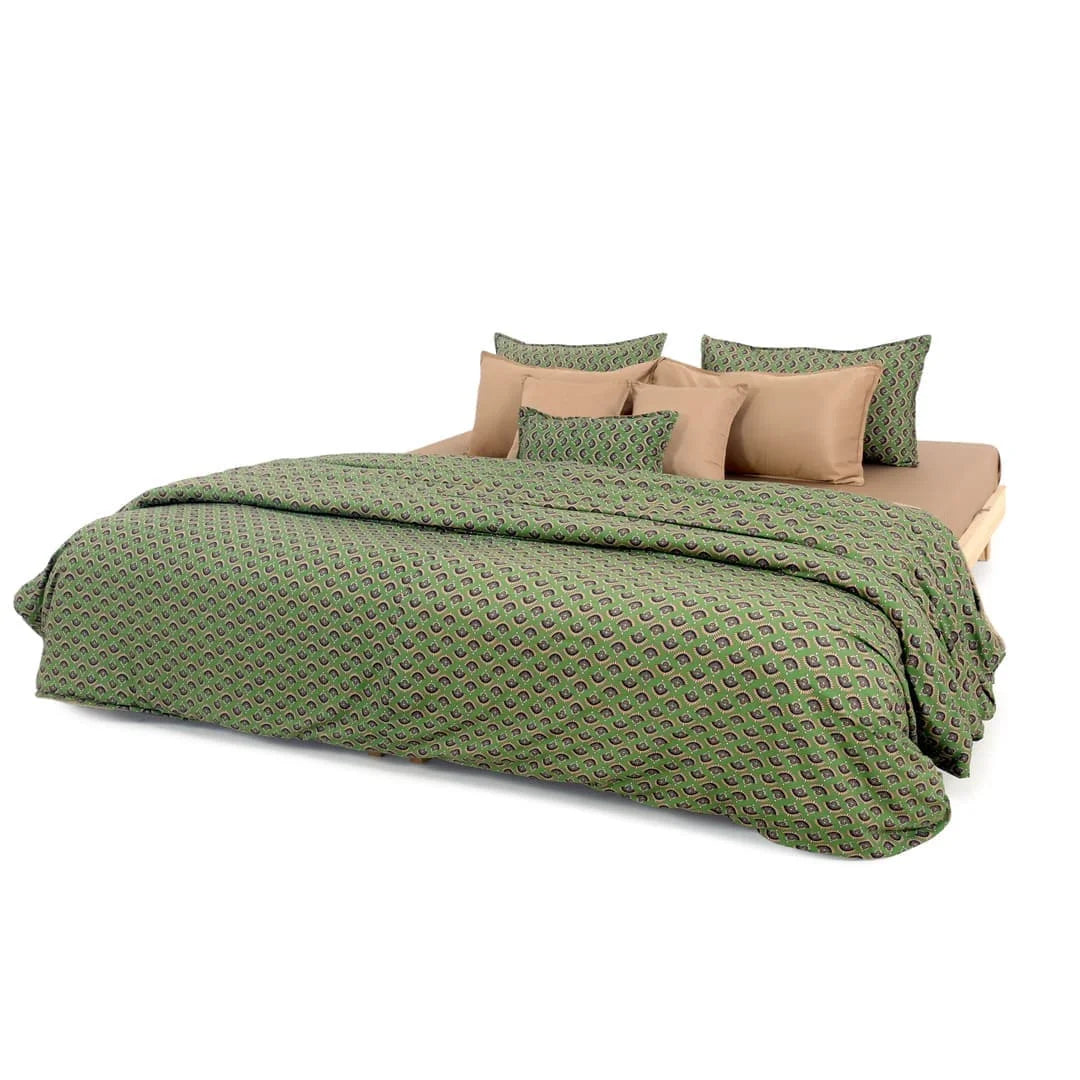 ZARF Italian Staple Weave Bedsheet With 2 Designer Pillow Cases, 2 Solid Pillowcases & 2 Cushion Covers - Pine